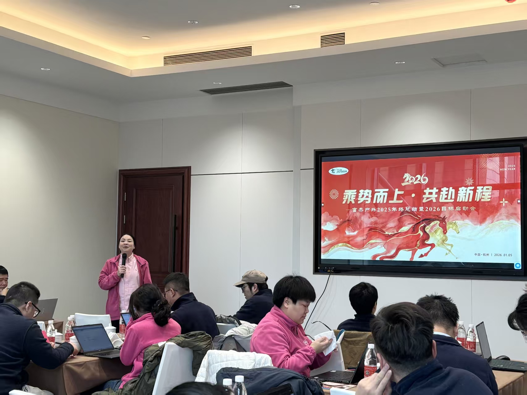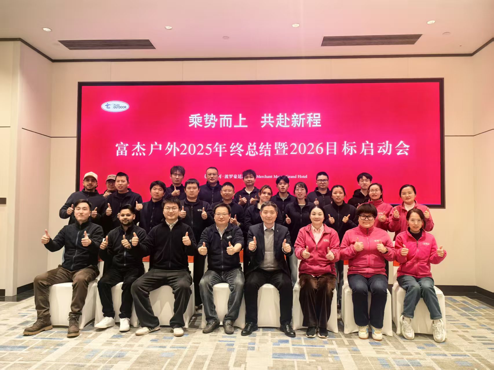 为了进一步推动客户企业绩效增长、目标达成,2026年1月5-6日,绩效增长、目标达成专家、理践咨询潘皖江老师应邀来到杭州富杰户外,作为该企业年度高级管理顾问,参加该企业“2025年度总结及2026目标启动会”,并围绕2025年实际完成情况以及2026年目标,以“乘势而上,共赴新程”为主题,现场专题分享,客户企业董事长、总经理、人力资源总监以及营销团队全体人员一起参加。